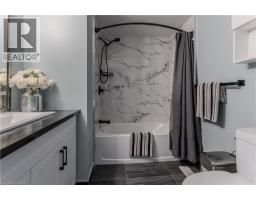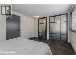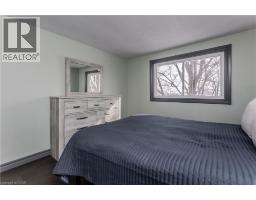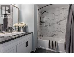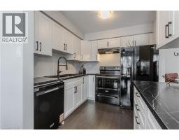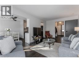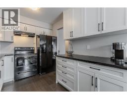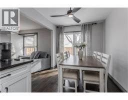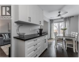 Welcome to an exceptional end-unit townhome offering over 1,100 sq ft of total living space, nestled in the highly sought-after Tyandaga community—a true lifestyle setting perfect for growing families. Completely transformed in March 2025, this home was ripped to the studs and thoughtfully rebuilt, delivering peace of mind, modern finishes, and turnkey living from top to bottom. Backing directly onto a park and bike trail, enjoy tranquil views, outdoor adventures, and a family-friendly atmosphere right outside your door. An inviting covered front porch with seating and a lovely perennial garden creates a welcoming first impression. Inside, every detail has been upgraded, including all new windows and exterior doors, hand-scraped hickory hardwood flooring throughout, updated light fixtures, and fresh paint for a bright, cohesive feel. The sun-filled main floor features an open-concept layout designed for everyday living and entertaining. The spacious living room is anchored by a large bay window, while the dining area offers a walkout to the rear deck and a remote-controlled light and fan—perfect for family meals or hosting friends. The custom kitchen is both stylish and functional, showcasing stone countertops, premium black stainless steel appliances, designer faucet, custom cabinetry, deep pots-and-pans drawers, and a dedicated coffee bar. Upstairs, the generous primary bedroom is filled with natural light, complemented by two additional well-sized bedrooms and a luxurious 4-piece bath featuring large slab tile flooring, a tiled tub/shower combo, and sleek black hardware. Out back, the fully fenced yard offers privacy and mature trees, with a wooden deck ideal for family BBQs, playtime, or unwinding while overlooking the peaceful park setting. Turnkey with thoughtful upgrades, park-side views, and a welcoming community feel, this home offers the lifestyle families are searching for. (id:61594)