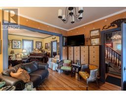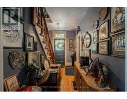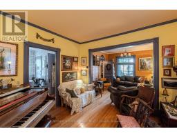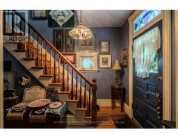 The home is decorated in the vintage maximalist style in keeping with its current role as a Stratford artist retreat. This two storey Victorian features original floor plan and character details - beautifully refinished hardwood floors, staircase, stained glass windows and some light fixtures. Updates include the addition of a steel roof, eavestroughs and fascia (2024) furnace (2020) air conditioner (2020), electric panel (2020) bathrooms, custom made screen doors, large porch and return to period decorating throughout. Appliances included. Mature and highly desirable Stratford neighbourhood with an easy walk to a unique and lively downtown, library, parks, river front, choice of public schools and all theatres. (id:61594)