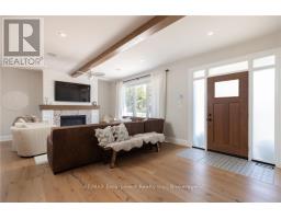 CUSTOM RENOVATION BUNGALOW. This exceptional residence is the perfect blend of modern luxury, thoughtful design, and everyday comfort. The open-concept main floor is bathed in natural light, showcasing high ceilings, wide-plank hardwood floors, and refined designer finishes throughout. The Great Room focal point is the gas fireplace and detailed surround open to the dining room area for easy entertaining. The chefs kitchen is a true showpiece, featuring quartz countertops, a 6-burner gas range, premium stainless-steel appliances, and a cleverly concealed walk-in pantry a seamless balance of beauty and function. The primary suite is a private retreat with a custom PAX closet system and a spa-inspired 3-piece semi-ensuite complete with a glass shower and heated floors. A second bedroom can also be used as a main floor office. From either the primary bedroom or the mudroom, step outside to a 400 sq. ft. covered porch where a fireplace and built-in TV space create a 3 season indoor-outdoor haven. The lower level offers an expansive extension of living space with a welcoming family/games room, a 4-piece bathroom, gym area, laundry room, and two additional bedrooms perfect for guests, hobbies, or a growing family. Outdoors, the fully fenced and landscaped backyard sets the stage for effortless entertaining and relaxation. Additional highlights include 9 ft. ceilings, hardwood flooring throughout, a heated detached double-car garage with easy access to attic storage, and a whole-home integrated security system with cameras and sound system. Every detail has been carefully curated in this exquisitely designed home, offering a move-in-ready lifestyle with upgrades too numerous to list. This is a property you'll want to experience firsthand. Located a short stroll to shops and restaurants of downtown Burlington and close proximity to highway access. (id:61594)
