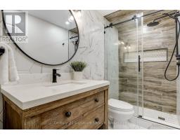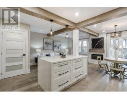 Welcome to Rockwood Village, one of East Mississauga's most established family-friendly communities, surrounded by green space and connected trails. This fully renovated townhome is a true showpiece, ideally located within the complex near visitor parking, playground, and tennis courts. The open concept kitchen features waterfall quartz countertops, stainless steel appliances, added built-in cabinetry, and under-valance lighting. It opens into bright living and dining spaces with rustic beams and engineered flooring, shiplap accent walls, and a fireplace. Walk out to your private backyard stone patio with views of the tennis courts and park. Upstairs, the primary bedroom offers a full ensuite, three custom built-in closets and a private balcony. All bathrooms have been beautifully updated with a clean, modern design. The finished lower level adds flexible living space with a large recreation room, full bathroom, and wood-burning fireplace. Steps to the Etobicoke Creek Trail system and minutes to Centennial Park, golf courses, transit, Dixie GO, Pearson Airport, and major highways including the 401, 403, 427, and QEW. Walk to Longos and enjoy nearby parks, playgrounds, tennis courts, and splash pads. Maintenance fees include exterior maintenance, lawn care, internet, cable TV, and water. Too many upgrades to list, this one is a must see! Don't miss out, book your showing today! (id:61594)