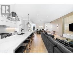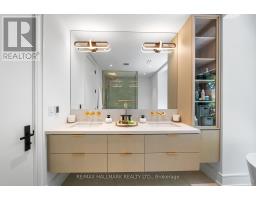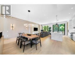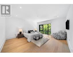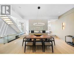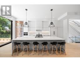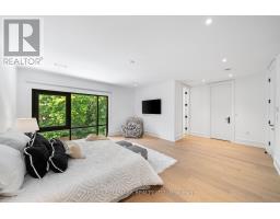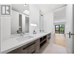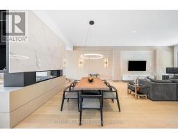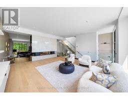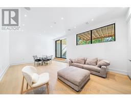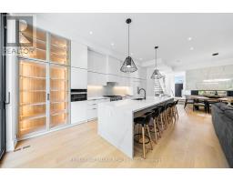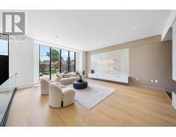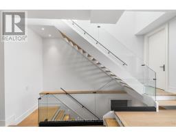Location, location! Tucked away in a quiet, highly accessible, and private pocket of Leaside, this is by far one of the most uniquely designed homes in Leaside, featuring a layout that blends flow, function, and style across over 4,800 sqft of luxurious living space and checking every box. The main floor features soaring 10 foot ceilings, a chef inspired kitchen with an oversized island that seats up to eight, top of the line Miele appliances, and a walkout to a large deck perfect for entertaining. Beautiful white oak hardwood floors and sleek glass railings run throughout the home. Upstairs, youll find four oversized bedrooms, each with direct access to a bathroom and generous closet space. The primary bedroom includes a stunning 7 piece ensuite with heated floors and a large walk in closet with a skylight. The basement spans two levels: the upper portion includes a spacious recreation area and a nanny suite with a 5 piece ensuite, while the lower level features a theatre room or music studio and a 4 piece bathroom. The basement also features a wine display, radiant heated flooring, built in speakers, a separate entrance, and a walkout. A rare double car garage, hard to find in Leaside, is complemented by a full snow melt system covering the driveway, front porch, steps, side path, backyard, and basement walkout, eliminating winter maintenance worries. Additional features include a Control4 smart home system, electric blinds, designer lighting with dimmers, exterior lighting, a sprinkler system, gas fireplaces, skylights, and laundry on two levels. This home truly stands out in one of Torontos most desirable neighbourhoods. Ideally situated just steps from Bayview Avenue and Eglinton Avenue East, this location offers easy access to some of the areas top schools, including Northlea Elementary and Middle School, Bessborough Drive Elementary and Middle School, Park Lane Public School and Leaside High School. (id:61594)