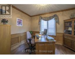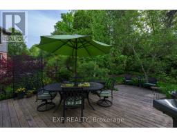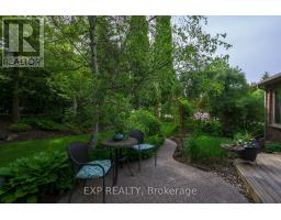 Nestled in a peaceful neighbourhood, this exquisite home blends comfort, privacy, and luxury. Designed for relaxation and entertaining, it boasts high-end finishes and thoughtful upgrades throughout. As you approach, you are greeted by the professionally landscaped grounds featuring Bluejay outside irrigation, complemented by landscape lighting that enhances the home's curb appeal. The exposed aggregate driveway and walkway lead you to the fully fenced private backyard, creating a secluded oasis with a natural gas hookup, perfect for alfresco dining. Inside, 3/4-inch oak flooring adds warmth to the inviting ambiance. The main level includes a family room with a newer gas fireplace, a gourmet kitchen with a gas stove, built-in microwave, elegant backsplash, and ample counter space, as well as a vaulted ceiling above the eating area. The large dining room with crown molding sets the stage for memorable gatherings, and the quiet office provides a peaceful retreat. The main floor also features a 2-piece bath and laundry mudroom with direct access to the 2-car garage. The professionally finished lower level is designed for relaxation and entertainment, with a dry bar, 3-piece bath and a soothing infrared sauna for a peaceful, rejuvenating escape. Upstairs, four spacious bedrooms with hardwood flooring and abundant natural light await, including a master suite with a walk-in closet, additional closet, and a luxurious 3-piece ensuite with stunning vaulted ceilings. This home is steps away from Medway Valley Heritage Forest and hiking trails, offering nature lovers easy access to green space. With a fully fenced backyard and a layout perfect for both privacy and entertaining, this home is a true sanctuary. Our home shows beautifully 10 Plus Pride of Ownership very evident here!! (id:61594)