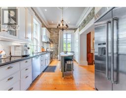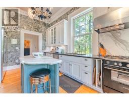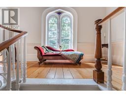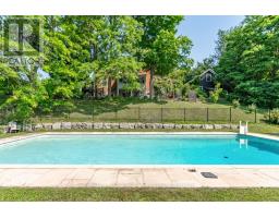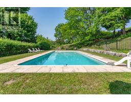 Welcome to Bayview House! This Stately brick residence (C1862) is the epitome of a classic Country Manor. The stunning combination of Georgian & Italianate architectural styles is steeped in history & drenched in character & charm. Loved by several prominent families & rock'n roll elite, such as the infamous Long John Baldry. Oh, if these walls could talk! Perched on a stunning 4.64-acre hilltop lot with expansive views, this 4+1 bed, 3+1 bath, boasts grand principal rooms for easy entertaining, 11.5 ft ceilings on the main floor, Marble fireplace surrounds, orig. cornices & moldings throughout. 4,768 sq ft of living space includes a full w/o lower level, w/1 bedroom nanny suite, separate entrance, full kitchen & 3 pc bath. The lower level also has a large Family Rm w/gas f/p & laundry. Main floor boasts a beautiful open kitchen w/high end appliances (Fisher Paykel, Jenn-Air, Miele), white cabinetry, granite counters & marble backsplash & island, open to a stunning Great Rm w/French doors leading to a private deck overlooking English gardens. Formal Dining Rm, cozy Den with wall-to-wall shelving units, elegant Powder Rm & 3-sided Sun Rm, overlooking the lush landscaping & fenced-in i/g s/w pool. Expansive oak staircase leads to an impressive Primary Bedroom with Luxurious 4 pc bath, 3 additional bedrooms & spa-worthy 4 pc main Bathroom. Recently renovated, with close to $800,000 spent, means nothing left to do but move in! Professionally painted t/o in Farrow & Ball 25, Original wide plank wooden floors refinished 25, newer bathrooms w/heated floors, newer windows, upgraded electrical, Cambridge ADA compliant elevator 2018, for wheelchair access, 2 newer furnaces & A/Cs, owned hot water tank 2024, roof 2017, gutters & spouts 2022, and so much more! The fully heated 1200 sq ft 2-story Coach house has endless possibilities (studio, gym, workshop) Professional landscaping with mature trees, covered patio w/hot tub, private walking trails & more. Minutes to Dundas! (id:61594)