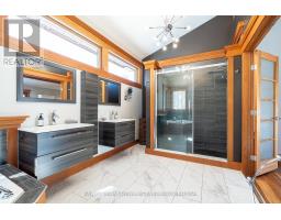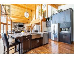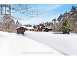 Top 5 Reasons You Will Love This Home: 1) This extraordinary estate commands attention on over an acre in a prestigious neighbourhood framed by mature trees, irrigated lawns, and striking rock landscaping, with stamped concrete walkways, an oversized triple garage, and stunning evening lighting, all while sitting just 11 minutes to Orillia and 18 minutes to Barrie 2) Stepping inside, you're greeted by soaring 23' vaulted ceilings, expansive windows, and a breathtaking open-concept design with sweeping views of nature, where exposed beams, a dramatic stone fireplace with a reclaimed mantle from the original Houben farmstead, tempered glass railings, and solid Douglas fir doors create a space as storied as it is architecturally stunning 3) The kitchen is a showpiece where engineered hardwood, granite countertops, a large island, tall cabinetry, a walk-in pantry, secondary bar sink, and upgraded lighting set the stage for an Electrolux 6-burner stove and dual refrigerators that make everyday cooking and grand-scale entertaining feel effortless 4) The primary suite is a world unto itself with a vaulted ceiling and private walkout to a stamped concrete patio and hot tub, while the spa-inspired ensuite delivers with heated tile floors, dual floating vanities, a deep soaker tub, and a walk-in shower with rainfall head and body jets, all framed by serene nature views 5) Designed for the long term, this home offers a separate basement entrance, tall ceilings, spacious bedrooms, and extensive storage, while recent mechanical upgrades, roughed-in geothermal, and unmistakable pride of ownership speak to a property meticulously cared for and built to endure for generations. 2,540 above grade sq.ft. plus a finished basement. (id:61594)