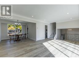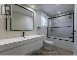 This 3+1 bedroom, 2.5 bathroom side-split home on a pie-shaped lot at the end of a quiet, tree-lined court offers over 2,000 sq. ft. of living space across three levels, there's room for everyone to gather, play, and unwind. Sun-filled front living room with a charming bow window welcomes guests, while a separate family room at the back opens to a private backyard deck, perfect for summer barbecues or quiet evenings. Updated vinyl plank flooring flows throughout, with a bright white kitchen featuring quartz countertops. The main bathroom boasts a luxury glass shower, floating vanity, and modern finishes. The fully finished lower level offers a rec room, a bedrooms, an office, a 3-piece bath, and built-in sauna. Enjoy a climate-controlled double-car garage complete with heating and air conditioning. A triple-wide driveway provides ample parking, and the home is just steps from schools, parks, and shopping ideal for family living. (id:61594)