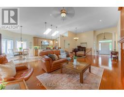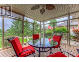 Welcome to 22 Orchard Way - an upgraded and beautifully maintained enlarged Waterford model offering the perfect blend of comfort, privacy, and natural views. This home backs onto the Rec Centre with peaceful pond views and no rear yard neighbours. Enjoy morning coffee or evening relaxation in the stunning 3-season sunroom featuring pot lights, ceiling fan, and sun shade blinds. Inside, the open-concept layout is carpet-free with hardwood flooring and soaring ceilings. The chefs kitchen boasts maple cabinetry, granite counters, pro-style range, skylights, and a peninsula with seating. The enlarged primary suite includes his & her walk-in closets, an ensuite with soaker tub, low-barrier shower, and double vanity. Additional highlights include a front guest bedroom with California shutters, a French-door den, main floor laundry with storage and garage access. The finished basement offers a 3rd bedroom with 3-piece ensuite, hobby room, and rec room. With a newer roof (2021), furnace and A/C (2018), HRV system, and central vac, this home is move in ready. Located steps away from the 18,000 sq. ft. recreation center featuring an indoor pool, fitness room, games/media rooms, library, party room, billiards, tennis courts, and scenic walking trails. Come live the lifestyle at Stonecroft! (id:61594)