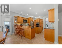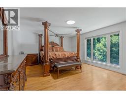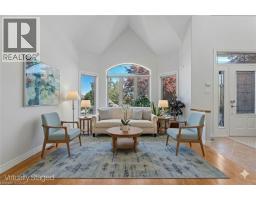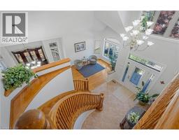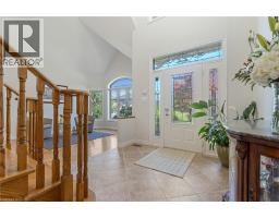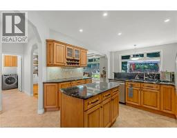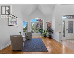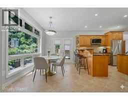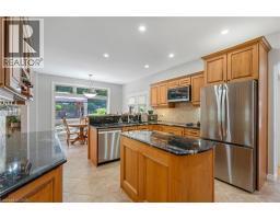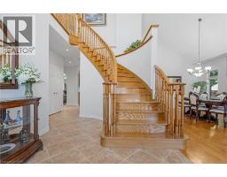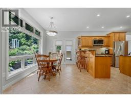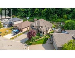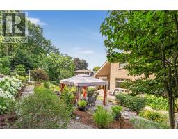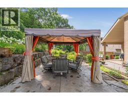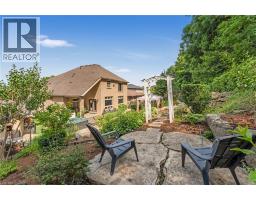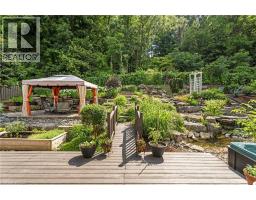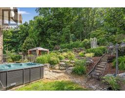 Escape the hectic pace of the modern world and step into your own private cottage retreat. Nestled gracefully beneath the Niagara Escarpment on a quiet crescent, this custom-built (2003) home sits on a premium pie-shaped lot backing onto lush, protected green space. This isn't just a backyard; it’s a lifestyle. Imagine trading screen time for real-world adventures—watching your kids catch frogs by your private, multi-tiered waterfall or chase fireflies as the sun goes down. Spend your evenings soaking in the hot tub, letting the stresses of the day melt away to the tranquil sounds of trickling water and a gentle symphony of cicadas and grasshoppers. It is a true piece of calm in a busy world. Inside, that connection to nature continues. Oversized windows flood the meticulously maintained 4+1 bedroom home with natural light, complementing the soaring ceilings and elegant rounded corners. The freshly painted interior features a kitchen equipped with brand-new appliances (including a gas cooktop option) protected by a 4-year warranty, plus reverse osmosis water at every sink. When it’s time to unwind, the spacious primary suite serves as the ultimate sanctuary, featuring a two-sided gas fireplace shared with a luxurious, spa-like ensuite. Family living is made easy with walk-in closets in every single bedroom, central vac, and two fruit cellars. The fully finished basement offers fantastic in-law or income potential, boasting rare 9-foot ceilings, a separate entrance, and a roughed-in kitchen. Complete with an oversized exposed aggregate driveway parking six cars, this move-in-ready home perfectly balances the tranquility of nature with modern luxury. (id:61594)