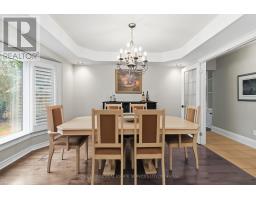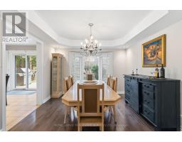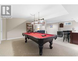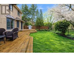 Nestled on a quiet, family-friendly street in Oakville's prestigious Glen Abbey community, this beautifully maintained four-bedroom, 2.5-bathroom home offers 3,400 sq. ft. of total living space and an exceptional blend of comfort, space, and natural beauty. Backing onto the protected Fourteen Mile Creek lands and just steps to Langtry Park and scenic walking trails, the setting is both private and picturesque. A welcoming foyer opens to elegant formal living and dining rooms, with the dining room featuring a tray ceiling, chandeliers, French doors, and lovely backyard views. The updated kitchen is both stylish and functional, complete with quartz countertops, a large peninsula island, custom cabinetry, mosaic tile backsplash, stainless steel appliances, and pot lights. The open-concept breakfast area offers sliding doors and a walk-out to the backyard, while the inviting family room features a gas fireplace with a classic white mantel, custom built-in shelving, and a large bay window overlooking the ravine. A practical laundry/mud room adds everyday convenience with cabinetry, a laundry sink, exterior access, and inside entry to the garage. Upstairs, the spacious primary suite features double doors, a walk-in closet, and a bright 4-piece ensuite with a soaker tub and separate shower. Three additional bedrooms, each with double closets, are complemented by a full 4-piece main bathroom. The finished basement extends the living space with a large open-concept recreation room, bright windows, pot lights, a dry bar with seating, and a games area with a pool table. Ideally located near top-ranked schools, Glen Abbey Community Centre, parks, trails, downtown Oakville, Bronte GO Station, the QEW, and everyday amenities, this is an exceptional opportunity to enjoy family living in one of Oakville's most sought-after neighbourhoods. Some photos have been virtually staged. (id:61594)