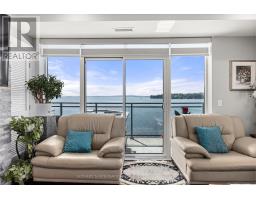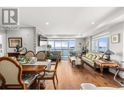 Experience refined waterfront living along the iconic St. Lawrence River in this exceptional 2-bedroom, 2-bathroom corner residence. Showcasing sweeping 270-degree panoramic views to the south, west, and north, this home captures ever-changing skies, sparkling water, and unforgettable sunsets from nearly every vantage point. Designed for those who appreciate both luxury and lifestyle, this residence offers a rare and coveted 44-foot private boat slip-inviting you to move seamlessly from elegant everyday living to effortless escapes on the water. Inside, a thoughtfully designed open-concept layout blends sophistication with comfort. A striking stone accent wall anchors the living space, where a sleek fireplace and curved 60" television create a warm, contemporary focal point-perfect for both intimate evenings and elevated entertaining. The gourmet kitchen is a statement in both form and function, featuring high-end appliances, marble countertops, a custom backsplash, and a layout designed to maximize space and flow. Throughout the home, upgraded hardwood flooring, motorized smart blinds, and curated lighting enhance the sense of modern luxury. The primary suite offers a tranquil retreat, complete with a spa-inspired ensuite and serene water views-an ideal place to unwind and recharge. Additional features include two parking spaces and a generous storage locker, ensuring convenience matches the home's elegance. This is more than a residence-it is a rare opportunity to embrace a sophisticated waterfront lifestyle, where luxury, comfort, and natural beauty converge. Please note that some photos have been virtually staged. (id:61594)