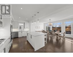 Welcome to 221 Cooks Mill Crescent, an elegant Urbandale "Newberry Park" model offering just under 3,200 sq. ft. above grade on an upgraded 50-ft lot with no rear neighbours. This 5-bedroom, 4-bath home (including a finished basement with a fifth bedroom and full bath) blends luxury and efficiency with Bosche appliances, (Samsung Fridge) granite counters, and custom cabinetry. Enjoy 9-ft ceilings on the mail level with nearly 18 foot ceilings in the living room, hardwood flooring, and a bright open layout centered around a gas fireplace. Upstairs, the primary suite features a spa-inspired ensuite with a soaker tub and glass shower. Built to Urbandale's exceptional standards, including triple-glazed windows, high-efficiency furnace, HRV, and R-rated insulation for lasting comfort. A rare offering - modern craftsmanship and total privacy in sought-after Riverside South. (id:61594)