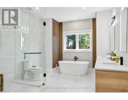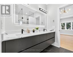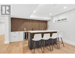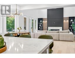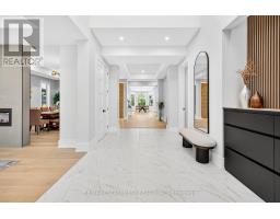 Nestled in one of Oakville's most prestigious pockets, this architectural masterpiece offers over 6,000 sq ft of finished living space on a rare, private, ultra-deep 200 ft. lot. This 4+1 bedroom home is defined by exquisite custom millwork and cabinetry throughout, featuring a dramatic open-to-above great room anchored by a sleek linear fireplace. The gourmet chef's kitchen is equipped with professional Sub-Zero and Wolf appliances, a full-sized pantry, and a private servery for seamless entertaining. The upper level is flooded with natural light through oversized windows and a large skylight, while each bedroom boasts soaring 12 and 13 ft ceilings. No detail has been spared, from the spa-like bathrooms with heated floors to the fully integrated Control4 smart-home system. The interior flows effortlessly to an oversized loggia with a gas fireplace, overlooking a meticulously landscaped yard. The fully finished walk-up basement adds versatile living space, while the exterior features a lifetime metal roof and a heated driveway accommodating 10 cars. Perfectly located just minutes from Downtown Oakville, Appleby College, the YMCA, and the water, this estate offers an unparalleled lifestyle. See features list. Luxury Certified. (id:61594)