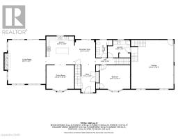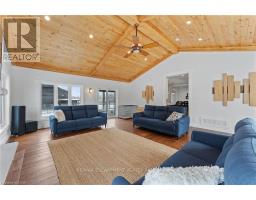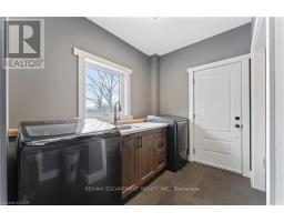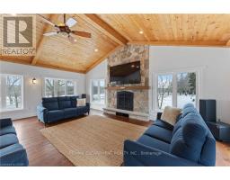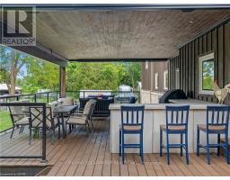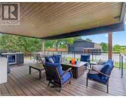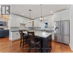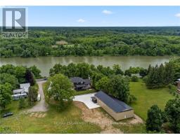 This stunning 5-bedroom, 2.5-bathroom home spans over an energy efficient 3,800+sq/ft and is perfectly positioned to overlook the breathtaking Grand River. Nestled on a generous lot overlooking rolling fields at the back and river access just across the street, it's an ideal setting for those who love the outdoors. Adding to its appeal, a massive 100' x 40' detached shop provides endless possibilities for hobbies, storage, or business use (w/ high speed fibre internet). The main floor boasts a spacious and inviting layout with 9ft ceilings, featuring a custom kitchen with a wood-paneled ceiling, stone countertops, a stylish herringbone backsplash, and a large island-perfect for gathering with family and friends. The adjacent dining room, with its tray ceiling and wood accent wall, offers picturesque views of the Grand River. The oversized great room is a true showstopper, complete with a floor-to-ceiling stone fireplace, vaulted ceiling, and expansive windows that frame stunning views in every direction. Step through one of two patio doors to your private outdoor oasis, featuring a large covered patio and built-in outdoor kitchen, ideal for entertaining. On one elevated side of the home, the primary suite offers a peaceful escape with a walk-in closet and a luxurious ensuite, complete with a custom tile shower. The second level hosts four additional bedrooms and a full 4-piece bathroom. The versatile basement offers even more potential, with its own private entrance from the attached double garage, making it an excellent option for an in-law suite or additional living space. For those needing extra room for vehicles, equipment, or recreational toys, this property delivers! The huge concrete parking area and driveway ensure ample outdoor storage/parking for vehicles/trailers. Don't miss this rare opportunity to own a spectacular home in a prime location with endless possibilities! Luxury Certified (id:61594)