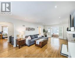 Cozy private and charming Cape Cod house located on huge over 0.6 acre (133 ft wide at the brch) lot located across from Blythe Rd/ Doulton neighborhood. Home features large open concept room with hardwood floors, wood burning, fireplace and potlights, separate dining room with hardwood and picture window. home features family size kitchen combined with breakfast area and breafast bar. Good size bedrooms on the second floor, finished basement with 3 pc bathroom , workshop and great room. (id:61594)