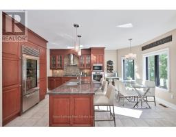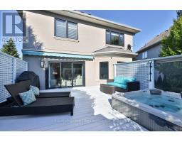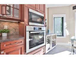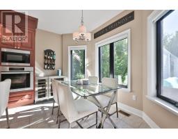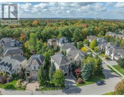 Set in the exclusive Woodhaven community backing onto greenspace and surrounded by the sprawling 16 mile creek ravine. Updated throughout by long time owner. Extensive improvement list available upon request. Herringbone interlock, stone walkway, professional landscaping, recently replaced windows (Frank by Ostaco) and double door entry provide welcoming first impressions. Hardwood, Godfrey Hirst broadloom, pot lighting, crown moulding & California shutters throughout. Stately dining room with contemporary chandelier opens to living room with archway opening. Bright living room with arched bay window, round accent windows, feature wall & contemporary light fixture. Kitchen features stainless steel appliances: Miele (stove top, range hood, B/I oven, B/I micro, dishwasher), Subzero (Fridge) & Perlick (wine & drink fridges). Kitchen also boasts island, granite counters & desirable sightlines into the family room. Adjacent convenient breakfast room overlooking backyard. Family room impresses with gas fireplace (custom mantle, granite surround), wall-to-wall built-in shelving & walkout to back deck. Back deck is an oasis with B/I hot tub, privacy screens and glass panels with remote roller blinds. Primary bedroom with double door entry, large walk-in closet and ensuite. 5 pc ensuite boasts double vanity, soaker tub & glass enclosed shower. 2 large additional bedrooms with generous closets (with organizers) and updated main bath with separate tub, glass enclosed shower and quartz counters. Convenient 2nd floor laundry. Bright basement with access to garage, mudroom, powder room, storage room and large rec room featuring above grade windows with California shutters, B/I entertainment unit & B/I speakers. Property is adorned with mature gardens, trees, landscape lighting & sprinkler system. Easy access to hospital, shopping, golf, restaurants and steps to the 16 Mile Creek trails. A stunning home in an exclusive enclave! Full improvement list available. (id:61594)