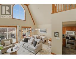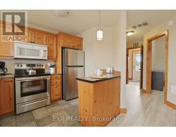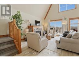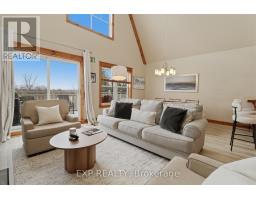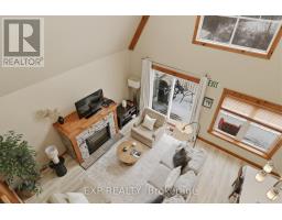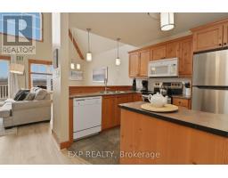 Licensed for Short-Term Rentals! This beautifully designed 2-bedroom, 2-bathroom upper-level condo is located in the sought-after Historic Snowbridge community at Blue Mountain Resort. With its established rental potential, this property offers an ideal opportunity for investors or those seeking a four-season getaway. Enjoy unobstructed golf course views from the private balcony, primary bedroom, and dining area, setting the scene for morning coffee or an evening glass of wine. The open-concept layout features soaring vaulted ceilings, oversized windows that flood the space with natural light, and a cozy gas fireplace for après-ski relaxation. The spacious primary suite includes a private 4-piece ensuite, while the second bedroom and full bath provide comfort for family and guests. This unit also features convenient in-suite laundry, a ski locker for secure storage, and access to a seasonal outdoor pool exclusively for owners and guests. With strong short-term rental demand in the Blue Mountain area, this property combines personal enjoyment with consistent income-generating potential. Owners and visitors alike will love the free resort shuttle offering direct access to Blue Mountain Village, ski hills, restaurants, shops, and nightlife. In summer, enjoy nearby private beaches, golf courses, and scenic hiking trails. Whether it's skiing, hiking, relaxing, or entertaining, Historic Snowbridge is the ultimate four-season escape and a proven short-term rental investment. (id:61594)
