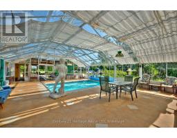 Spacious 1.5 Storey Home on Nearly 5 Acres with In-Law Suite & Indoor Pool. Discover exceptional space, flexibility, and location just steps from the scenic Niagara River. This 2,700+ sq. ft. home sits on nearly 5 acres and features a rare, fully equipped upper-level in-law suite ideal for multi-generational living or rental income.The main floor offers a warm, functional layout with a gas fireplace in the living room, formal dining area, granite kitchen, three cedar-lined bedrooms, and a large family room leading to a bright three-season sunroom.The in-law suite includes a spacious living area, eat-in kitchen, generous bedroom, 5-piece bath with laundry hookups, and a massive private balcony. The finished basement includes a rec room with wood-burning fireplace, partial bath, and laundry area. Outside, enjoy resort-style living with your own private indoor concrete pool, oversized patio, and beautifully treed lot.Additional features include hardwood floors, a metal roof, attached 2-car garage, alarm system, back-up generator, and more. Why leave home? This one-of-a-kind property offers the ultimate staycation lifestyle. Don't miss this rare opportunity! (id:61594)
