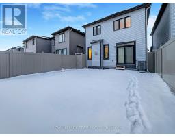 This stunning 2024-built 3-bedroom 4-Bath home on a silent crescent offers a sophisticated blend of modern elegance and functional design, featuring the premium layout with extensive high-end upgrades. The open-concept main level is defined by hardwood flooring throughout and a Modern Metro Trim Package, anchored by a spacious living room with a gas fireplace and an updated Gourmet Kitchen that serves as a chef's dream. This kitchen is fully equipped with Quartz countertops, a large island, a chimney hood fan, a gas line for the stove, and strategic potlights for a polished finish. Upstairs, the updated floor plan features a primary sanctuary complete with a walk-in closet and a lavish updated 5-piece Executive Ensuite boasting a frameless glass shower and sleek Quartz finishes. Two additional bright bedrooms, a convenient laundry room with a sink, and a large linen closet complete the upper level. The professionally finished basement expands the living space further with a fourth bedroom, another full bathroom, and a versatile area ideal for a home gym or playroom. In total, the home provides 4 bathrooms, ensuring maximum convenience for large families or guests. Outside, the fully fenced backyard offers a secure and private retreat, perfect for relaxing or outdoor play. Ideally situated for families, this home is located just steps away from a Catholic school and a local park, combining luxury living with an unbeatable, community-focused location. (id:61594)