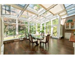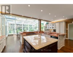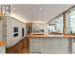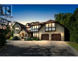 Presenting this custom built estate, set behind a gated private, tree-lined 100 x 250 ft lot, offering over 8,000 square feet of elegant, thoughtfully designed living space across three expansive levels. Crafted for discerning buyers who value space, privacy, and timeless design, this grand estate greets you with a soaring double-height foyer and sweeping staircase, setting the tone for the refined interiors beyond. Designed to impress, the main level features formal living and dining rooms, an appointed home office, a sun-filled family room with a stone surround fireplace. A chef's kitchen anchors the heart of the home, complete with granite counters, panelled appliances, and a large central island, seamlessly flowing into the breakfast area with tranquil garden views. With five spacious bedrooms and eight bathrooms, the home offers exceptional flexibility for growing families or multi-generational living. The main-floor guest suite provides privacy for in-laws or long-term guests, while upstairs, each bedroom includes its own ensuite. The luxurious primary retreat features a spa-inspired ensuite and walk-in closet, your private haven at day's end. The fully finished walk-out lower level is an entertainer's dream, featuring a second full kitchen, full bar, custom wine cellar, home gym, sauna, and expansive recreational spaces with multiple lounge zones and a fireplace. Whether you're hosting large-scale gatherings, accommodating extended family, or seeking rental income potential, this level is designed to elevate your lifestyle. Outdoors, mature trees surround the professionally landscaped yard, complete with stone patios, manicured gardens, and ample space for a future pool or outdoor oasis. Set within the exclusive Sheridan enclave, known for its proximity to top-rated schools, golf clubs, lakefront parks, and just minutes from the QEW. This is more than a home; it's an investment value in one of Mississauga's most desirable communities. (id:61594)