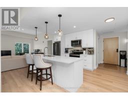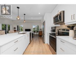 Enjoy the ease of condo living in the heart of Creemore, a vibrant four-season village known for its charm, trails, golf, and ski hills. This premium 3-bed, 2-bath corner unit at The Brix offers nearly 1,400 sq ft, one of the largest floor plans in the building, complete with an oversized nearly 300 sq ft wrap around private balcony overlooking a peaceful forest backdrop. Bright and beautifully designed with large windows, this suite features luxury vinyl plank flooring, a chef-inspired kitchen with an oversized eat-in island, and an open-concept layout ideal for entertaining. The primary bedroom includes a walk-in closet and private ensuite, while a second full bathroom offers semi-ensuite access for guests or family. Two owned parking spaces are included, along with access to modern amenities such as a gym and a stylish party space for gatherings. Whether you're looking to downsize in style or enjoy a weekend retreat, this move-in ready suite offers the perfect blend of space, comfort, and low-maintenance living in one of Ontarios most desirable small towns. (id:61594)