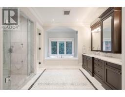 Exquisite custom David Small-designed estate in Prestigious Mineola West. The epitome of luxury and craftsmanship. Set on a Muskoka-inspired lot towering trees and lush professionally landscaped gardens this residence offers nearly 7200 Sq Ft of luxurious living space seamlessly blending natural beauty and contemporary sophistication. An impressive facade of natural stone & wood accents complemented by a 3-car garage w'car lift heated driveway & walkways transcends expectations for the elegance within. The grand 40" mahogany entry door opens to a 20FT foyer with radiant marble floors & skylights that flood the space with light setting the tone for the refined luxury that defines this home. The main level unfolds with 17FT ceilings in the formal living room, an office with custom cabinetry & a refined dining room ideal for entertaining. The gourmet kitchen is a culinary showpiece featuring granite counters marble backsplash custom cabinetry & premium Sub-Zero Wolf and Bosch appliances. Family room with beamed vaulted ceiling overlooks the backyard oasis. Upstairs the primary suite offers a tranquil retreat with a vaulted ceiling private terrace dressing room & lavish six-piece marble ensuite with heated floors and skylights. Three additional bedrooms each feature hardwood flooring crown moulding and beautifully appointed ensuites. A second laundry room enhances everyday convenience. The walk-up lower level with heated floors showcases a large recreation room with fireplace a granite wet bar climate-controlled wine cellar gym and two guest suites. Outdoors a 48FT saltwater pool outdoor kitchen with Italian pizza oven wood-burning fireplace & covered terrace create a resort-like atmosphere surrounded by mature trees, AstroTurf lawn & Irrigation System. Minutes from Port Credit top-rated schools parks and lakefront amenities this Mineola West masterpiece embodies refined living timeless design and modern luxury where architectural excellence meets everyday comfort. (id:61594)