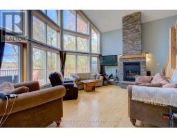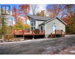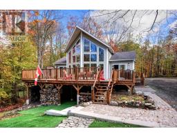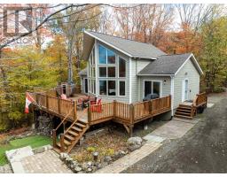 Beautiful and stunning 2 bedroom Viceroy home located on one of the most desirable lakes in our region. This home is located in Bayside Woods Cooperative, a lakeside property that has just under 5 acres of common land and 1100 feet of beautiful southwest facing shoreline. This home sits on an ICF poured concrete foundation and has access to the side yard through a double door that also allows for storage of yard equipment and perhaps some water toys. There is a finished recreation room with an electric fireplace, workshop and utility area. The main level of this home has an eat-in style kitchen, a laundry room, an inviting living room with cathedral ceilings, wood burning fireplace and floor to ceiling windows looking out over the lake. There are two bedrooms, 3pc. ensuite bathroom, another full 4pc. bathroom and stairs to the loft area. This area is currently set up as a sleeping area for extra family but could also be an amazing home office. The large cedar deck overlooks the land that has a slight slope down to the clear, inviting waters of Bobs Lake with a beach area that gradually gets into deeper water. There is a large storage shed and plenty of space for outdoor activities. The house is serviced by a septic system and drilled well and has fibre optic internet. The coop offers a convenient boat ramp and a storage building as well as a common dock. There are 14 owners of this cooperative property, who all take pride in their homes/cottages and the land that surrounds them. Bobs Lake is one of the largest lakes in our area stretching 19 kms long with many islands, bays and inlets to explore, fish and enjoy. Discover what this hidden gem has to offer and dive into cottage life on this stunning Canadian Shield setting. Annual fees (approx. $3522 for 2024) include common area hydro, docks, all maintenance and taxes. Hydro and road fees are in addition to these fees. (id:61594)