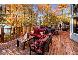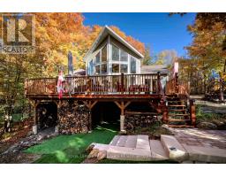 Beautiful and stunning 2 bedroom Viceroy home located on one of the most desirable lakes in our region. This home is located in Bayside Woods Cooperative, a lakeside property that has just under 5 acres of common land and 1100 feet of beautiful southwest facing shoreline. This home sits on an ICF poured concrete foundation and has access to the side yard through a double door that also allows for storage of yard equipment and perhaps some water toys. There is a finished recreation room with an electric fireplace, workshop and utility area. The main level of this home has an eat-in style kitchen, a laundry room, an inviting living room with cathedral ceilings, wood burning fireplace and floor to ceiling windows looking out over the lake. There are two bedrooms, 3pc. ensuite bathroom, another full 4pc. bathroom and stairs to the loft area. This area is currently set up as a sleeping area for extra family but could also be an amazing home office. The large cedar deck overlooks the land that has a slight slope down to the clear, inviting waters of Bobs Lake with a beach area that gradually gets into deeper water. There is a large storage shed and plenty of space for outdoor activities. The house is serviced by a septic system and drilled well and has fibre optic internet. The coop offers a convenient boat ramp and a storage building as well as a common dock. There are 14 owners of this cooperative property, who all take pride in their homes/cottages and the land that surrounds them. Bobs Lake is one of the largest lakes in our area stretching 19 kms long with many islands, bays and inlets to explore, fish and enjoy. Discover what this hidden gem has to offer and dive into cottage life on this stunning Canadian Shield setting. Annual fees (approx. $3522 for 2024) include common area hydro, docks, all maintenance and taxes. Hydro and road fees are in addition to these fees. (id:61594)