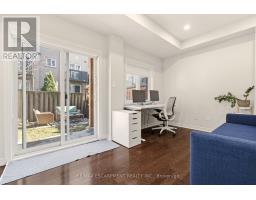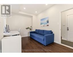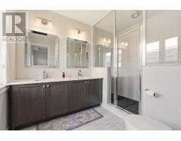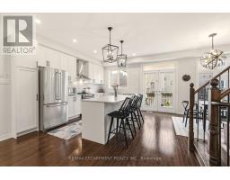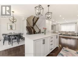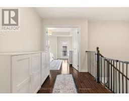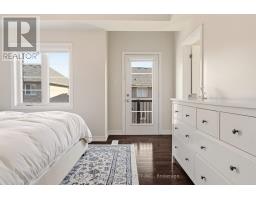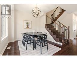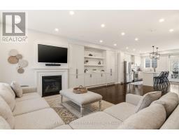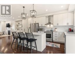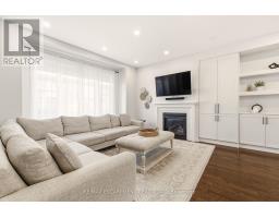 Beautifully built townhome featuring 3+1 bedrooms, 4 bathrooms, and a double car garage. The open-concept main floor features a bright, spacious living area filled with abundant natural light from large windows. Upgrades include dark hardwood flooring throughout, dark-stained oak staircases, 9-ft ceilings, a stone fireplace mantel and custom built-ins in living room with extra storage. The gourmet kitchen features quartz countertops, a large centre island with breakfast bar, and KitchenAid stainless steel appliances, perfect for both everyday living and entertaining. The spacious breakfast area includes an oversized window and walkout to a covered balcony overlooking the rear yard, ideal for casual or formal dining. The primary suite features dark hardwood flooring, a large walk-in closet, private walkout to an upper deck, and a luxurious 4-piece ensuite. Two additional bedrooms feature hardwood floors and double-door closets. Conveniently located close to the 407, major highways, hospital, shopping, parks, and schools, making it an ideal home for families and commuters alike. (id:61594)