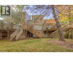 Experience resort-style living with a pool, relaxing sauna, and a tennis court just steps away. Located in one of Waterloo’s most desirable neighbourhoods, this beautifully maintained 3-bedroom, 3-bath townhome is surrounded by mature trees and nature trails, offering exceptional privacy while still being a short walk to the St. Jacobs Farmers’ Market and minutes from Conestoga Mall, the LRT, and expressway access. The bright, open main floor features soaring ceilings and abundant natural light. A loft dining area overlooks the Great Room and the treed backdrop. The eat-in kitchen offers windows on two sides and direct access to the private deck. A standout feature of this home is that each bedroom has its own private 4-piece en-suite bath. The versatile lower-level bedroom is ideal for guests, or can be used as a home office. Residents enjoy exclusive amenities including an outdoor pool, sauna, clubhouse, party room, library, and a tennis and pickleball court, along with worry-free lawn care and snow removal. A lifestyle truly in a league of its own. (id:61594)