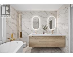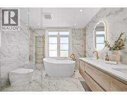 Welcome to 2252 Dewsbury Dr., a home that truly feels like a designer showcase-where modern elegance meets thoughtful craftsmanship at every turn. This one-of-a-kind, fully renovated home offers a seamless blend of clean lines, soft tones, and high-end finishes throughout. Some features of this stunning home include 9-ft ceilings, crown molding, luxury American walnut hardwood, Italian porcelain tile, a custom staircase with glass railing, and a natural stone feature fireplace. The showstopper kitchen has been meticulously designed with quartz countertops, a waterfall island, and custom wood cabinetry by Elite Kitchen Designs. No detail has been overlooked, from premium hardware to custom drawer organization. High-end appliances are complemented by Italian Litze faucets, a Blanco sink, and sleek recessed lighting-delivering both style and function. Upstairs, the primary bedroom features a walk-in closet and a spa-inspired ensuite with a frameless glass walk-in shower, custom Virta wood vanities, Lune anti-fog mirrors, a Tuzio towel warmer, and a freestanding soaking tub. Three additional bedrooms share a fully renovated bathroom. The finished basement extends the living space with a family room, one additional bedroom, a 3-piece bath, a dedicated laundry area, and ample storage. The backyard is a private oasis featuring a hot tub, cedar gazebo, a composite deck with a louvered pergola and roller shades, plus an irrigation system. Sun-filled, move-in ready, loaded with upgrades, and meticulously maintained, this exceptional home offers the perfect blend of luxury, comfort, and timeless elegance. Located on a premium, professionally landscaped corner lot in the prestigious Bronte Creek community, surrounded by scenic walking and biking trails, top-rated schools, and essential amenities-this is a rare opportunity to own an undeniably unique, fully renovated designer home in one of Oakville's most desirable neighbourhoods. This home is a must-see! (id:61594)
