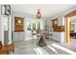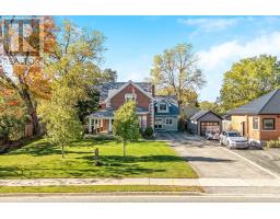 There is so much to say about this gorgeous renovated century home with an attached office for work from home possibilities! Amazing curb appeal with gracious covered front porch, and the office, beautifully integrated to the house to seem seamless. Totally gutted and renovated since 2009, this home has all the modern tasteful features with all the charm and warmth of the older century home. High ceilings, hardwood flooring, and made bright and sunny with tall windows. Elegant and spacious living and dining room with pot lighting. Cute powder room located under the stairs! In ceiling speaker system can pipe music throughout the main floor - a plus for entertaining! Great kitchen with plenty of counter space, open to the eating area, wet bar with additional fridge, and the games room addition with vaulted ceiling, gas fireplace, heated floors, and walk out to the covered patio overlooking the .625 acre lot. Upper floor offers four bedrooms accessed by two staircases, one from the front hallway, and one from the kitchen. The primary bedroom has built-in closets, an exposed brick wall, and a lovely modern 4 pc bathroom. The three other excellent sized bedrooms share the roomy main bath with double sinks and water closet. All bathrooms have heated floors. The 735 sq ft custom built office, attached to the premises, offers a small business owner the luxury of working from home in a well built, pleasing office with quality materials offering space on the main floor with 2 pc bathroom, and a loft office. Recently built drive shed in the backyard gives you tons of storage space to put lawncare equipment, or would make a great workshop. There is an insulated room on the lower level with stairs up to a loft for more storage, or a gym or studio space. The huge flat backyard, in the past, accommodated an ice rink that all the neighbourhood kids used and loved! There are lovely shade trees and perennial gardens completing this wonderful package. (id:61594)