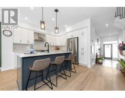 This move-in ready townhome features all-brick & -stone front elevation. A bright & spacious front entry features tile floor, which is extended to the powder room. Inside entry to the oversized garage is also found here. The open concept layout sets the tone for this upscale townhome. Attractive wide-plank wood floors & flat ceilings emphasize spaciousness. The kitchen has been efficiently designed to include sleek quartz counters, an island with breakfast bar, tiled backsplash, microwave sling, pot drawers and pantry. The eating area is currently furnished as media nook and is open to the dining room. The open concept offers flexibility for furniture arrangement. The generous living room is highlighted with an impressive fireplace, recessed lighting, large window and patio door, which offers an abundance of natural light and easy access to the back yard. Comfort characterizes the second level, featuring quality broadloom and ceramic tile flooring throughout. Primary bedroom boasts a walk-in closet, a large window and private luxury ensuite bath with soaker tub, large shower stall and a two-sink vanity. Two additional bedrooms are well-proportioned, offering ample closet space. A multi-use loft is ideal for those who require a home office, and the four-piece main bath and laundry room complete this level. Built with the growing family in mind, the expansive lower level significantly increases the living space of this home. The recreation room with quality carpeting, large window and recessed lighting is the ideal space for informal gatherings. Ample storage and future bathroom rough-in will be welcome features. Separate utility room accommodates the furnace, HRV and hot-water-on-demand system. Plenty of storage space remains in the large unfinished area. Last but not least, a generous back yard provides unlimited opportunity to personalize. This home is beautifully maintained, upgraded and decorated, better than new. Come back to stay! 24 hrs for offers. (id:61594)