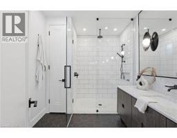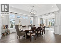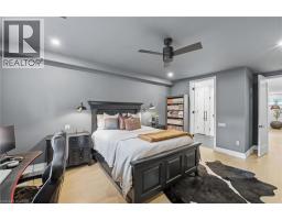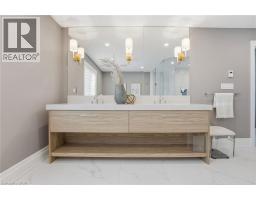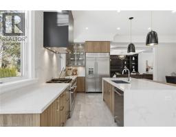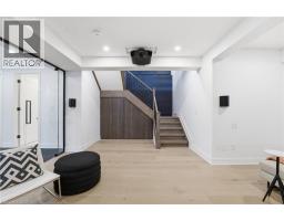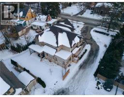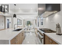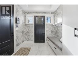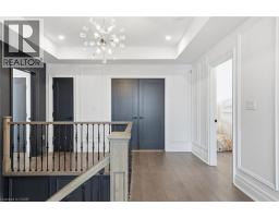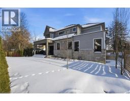 Discover an exceptional custom residence nestled in an exclusive lakeside enclave just moments from the shores of Lake Ontario and minutes to downtown Burlington’s vibrant boutiques, cafés, and restaurants. Offering 5 bedrooms and an impressive 8 bathrooms (5 Ensuite Baths), this extensively upgraded home blends timeless elegance with modern comfort across all levels. The main floor unfolds with soaring 10-foot ceilings, rich hardwood flooring, intricate wainscoting, coffered ceiling details, and a striking oak staircase with wrought-iron balustrades—setting a sophisticated architectural tone. Thoughtfully designed principal rooms include formal living and dining spaces, alongside a welcoming family room anchored by a gas fireplace, custom built-ins, and walkout access to the rear grounds. A well-appointed mudroom with interior access to the double garage enhances everyday functionality. At the heart of the home, the bespoke chef’s kitchen showcases a statement quartz island, premium stainless appliances, gas range, and an inviting breakfast area designed for both daily living and entertaining. Upstairs, the serene primary retreat offers a luxurious dressing room, spa-inspired ensuite, and convenient private laundry. The fully finished lower level is curated for lifestyle and leisure, featuring a spacious recreation lounge with fireplace, projector and integrated audio, a glass-enclosed fitness studio, guest bedroom, and a heated-floor bath—ideal for extended family or entertaining. Set on a professionally landscaped, low-maintenance lot, the exterior presents refined curb appeal with irrigation and security features, while the covered rear patio creates an elegant outdoor living space for relaxation and hosting. A rare offering where lakeside proximity, architectural quality, and turnkey luxury converge. (id:61594)