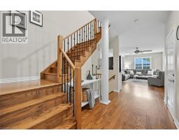 Welcome to this fabulous updated 4 bedroom, 4 bathroom family home located in Burlington’s highly desirable Orchard community. Perfectly positioned backing onto greenspace and walking trail. This bright spacious home offers the ideal blend of comfort, function, and style, with thoughtful upgrades throughout. The open concept main level features custom wood wall/entry bench, 9’ ceilings, warm toned hardwood floors, hardwood staircase w/black iron like spindles and lots of natural light. Large eat-in kitchen boasts loads of cabinetry and counter space, pot lighting, and LG stainless-steel appliances as well as a walkout to deck, private yard and gate to walking trail. Updated powder room with newer tile flooring, vanity, and wainscoting. Upstairs, you’ll find 4 really good size bedrooms and 2 bathrooms. Super spacious primary suite with walk-in closet and a newly updated ensuite...quartz counter, custom glass shower (2025). The lower level expands your living space with a finished recreation room, gas fireplace/stone feature wall as well as a 2 pce. bathroom making it a great space for family movie nights, play room or teens to entertain their friends. There is also lots of storage here. Outdoor living offers a 400 sq. ft. two-tier cedar deck (2013) complete with a 10’x12’ covered gazebo with curtains and durable polyester roof, ideal place for for relaxing or entertaining. Full roof done in (2022) with transferable warranties for peace of mind. Beyond your yard, enjoy direct access to a walking trail that links through the Orchard to Pathfinder Park and Orchard Community Park, a family-friendly network of paths, playfields, and the new leash-free area. Close to excellent schools, parks, shopping, restaurants, and commuter routes. (id:61594)