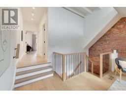 In the heart of the Annex, this exquisitely redesigned three-storey single-family home blends refined design with exceptional everyday livability. Gutted to the studs and thoughtfully reimagined by Palmerston Designs in 2019, it was crafted for elevated family living with warmth, function, and style.The main floor makes an unforgettable first impression with wide plank white oak floors throughout, soaring ceilings, exposed brick, and a rebuilt staircase with sleek modern railings. The heart of the home is a stunning chef's kitchen with a dramatic 12-foot island, integrated appliances, induction stove, drinks fridge, deep farmhouse sink, multiple floor-to-ceiling pantries, and added windows that fill the space with light. A powder room and coat closets complete this level. Sliding glass doors open to a tiered deck and an extraordinarily deep private garden beneath a mature tree canopy, creating a rare urban retreat for entertaining and quiet family moments alike.The upper floors offer an outstanding family layout. The second floor features two spacious bedrooms, each with a dedicated bathroom, a separate family room, plus a laundry room. The entire third floor is devoted to a luxurious primary retreat with exposed brick, vaulted ceilings with exposed architectural beams, abundant natural light, a walk-in closet, spa-inspired ensuite, private balcony, and a flexible lofted space ideal for a home office, lounge, nursery, or creative studio. The 2nd floor family room and 3rd floor loft space could be enclosed for additional bedrooms if so desired. The finished lower level, with tall ceilings and a separate entrance, is set up as a dream home gym and offers incredible versatility. A rare opportunity to own a truly design-forward family home on a deep lot in one of Toronto's most coveted neighbourhoods. Steps to Dupont Subway Station, Jean Sibelius Park, top rated public and private schools and the bustling retail of Bloor Street plus fine dining on the Dupont Strip. (id:61594)