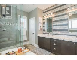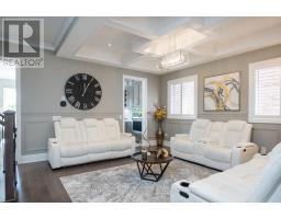 Welcome to this stunning 4-bedroom, 4-bathroom Greenpark home in Miltons highly desirable Ford neighbourhood. Built in 2019 and tucked away on a quiet, private court, this residence backs onto serene pond views and lush greenspace, offering both beauty and privacy. The main floor features soaring 10-foot ceilings, hardwood flooring, a spacious office/den, and elegant coffered ceilings in the dining and living rooms. The showpiece kitchen boasts ceiling-height cabinets with glass inserts, a waterfall quartz island, quartz counters and backsplash, and high-end stainless steel appliances including a gas cooktop, with direct access to the backyard from the large eat-in area. A spacious mudroom with interior garage access add to the thoughtful design. Upstairs, 9-foot ceilings and laminate flooring carry through to the bedrooms, including a luxurious primary retreat with two custom walk-in closets and a spa-like ensuite. Bedrooms 2 and 3 share a Jack-and-Jill bathroom, while Bedroom 4 enjoys its own private ensuite and a convenient upper-level laundry room. With parking for four vehicles and an unfinished basement with high ceilings and oversized windows, this home offers endless potential in a perfect family-friendly location close to all amenities. (id:61594)