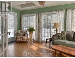 With its front veranda, peaked roofline, and gingerbread trim, 2296 Eady Rd looks like it's been pulled from the pages of a storybook . This charming two-storey home sits on 30 deep acres, offering the kind of space that's hard to find and even harder to outgrow. Inside, the home is bright and welcoming, with 3+1 bedrooms, a full bath upstairs, powder room on the main, and an ensuite featuring custom cabinetry and a retro blue-and-white checkered floor. The main living area is filled with natural light, and the wood-burning fireplace adds both warmth and character. The kitchen is practical and solid, with granite counters and a layout that just works. At the back of the home, the sunroom steals the show - full of windows, flooded with light, and offering a panoramic view of the acreage beyond. It's the kind of space that makes you want to sit down and stay awhile, no matter the season. Just outside, a back deck leads you into a deep stretch of land - ideal for walking trails, gardens, or simply room to spread out and explore. A detached 4-bay garage offers space for tools, toys, or whatever project comes next. And with easy access to Storyland Rd. and Hwy 17, you're never far from what you need - and always glad to come home. (id:61594)