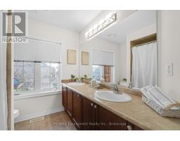 Welcome to this stunning 4-bedroom corner residence, impeccably move-in ready, nestled in the prestigious Joshua Creek community. This highly sought-after Fernbrook home offers approximately 3,200 sq. ft. of elegantly appointed above-grade living space, plus a partially finished basement. Enjoy an exceptional location within walking distance to top-ranked Iroquois Ridge High School, Iroquois Ridge Community Centre and Glen Ashton Park. Minutes to shopping centres, with seamless access to Highways 403, 407, and QEW, and a short drive to the GO Train for effortless commuting to downtown Toronto. Striking curb appeal with professionally landscaped grounds and stamped concrete patios in both the front and backyard. The front patio, framed by mature greenery, offers a serene, quiet retreat, while the backyard patio is perfect for joyful outdoor dining, offering a perfect balance of zen and zest outdoor living. Step inside to a bright, sophisticated interior where expansive windows bathe the home in natural light, highlighting soaring12-foot ceilings, elegant crown moulding, and the glow of warm pot lighting. The dramatic two-storey family room with a 17-foot ceiling creates a grand, airy ambiance. A main-floor office features a cathedral ceiling and rich solid oak paneling. The gourmet kitchen is beautifully appointed with granite countertops, a center island, deep upper maple cabinetry, under-cabinet lighting, and new appliances. Retreat to the luxurious primary suite featuring a spa-inspired ensuite with quartz countertop. All bedrooms are generously proportioned, offering exceptional comfort and privacy. The partially finished basement features larger upgraded windows that bring in additional natural light, along with a bathroom rough-in and a spacious area offering excellent potential for future customization. A rare offering that blends space, natural light, and refined living in one of Joshua Creek's most desirable settings. (id:61594)