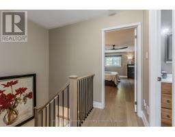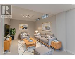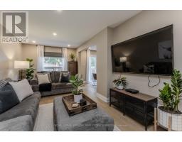 Welcome to this spacious executive townhome offering over 2,100sf of modern, move-in ready living space in the sought-after Tyandaga Highlands community. Perfectly situated with quick access to major highways, parks, schools, shopping, and everyday amenities, this home combines convenience, comfort, and style-making it an ideal choice for new families looking to settle in Burlington. The front exterior greets you with perennial gardens, a charming covered porch, and an attached garage with inside entry. Step inside to find a welcoming foyer with sleek modern tile leading into a functional main floor layout. Newer pot lights (2021) and wide-plank hardwood floors flow throughout, complementing the bright and open living and dining areas. The upgraded kitchen is a true highlight with quartz countertops, custom cabinetry, stainless steel appliances, and a stylish tile backsplash. The dining room, open to the living room, provides a seamless flow for family gatherings and features a walkout to the rear yard. A modern 2-piece powder room and upgraded wood staircase with iron spindles (2021) complete this level. Upstairs, the expansive primary retreat serves as a peaceful escape with a large walk-in closet and a renovated spa-like ensuite (2021) featuring an oversized glass walk-in shower and LED mirror. An additional generously sized bedroom and a 4-piece main bathroom provide plenty of space for children, guests, or a home office. The fully finished lower level offers even more living space with newly upgraded carpet (2025), a spacious recreation room, laundry, and ample storage. Whether you need a playroom, media lounge, or private office, this versatile level adapts to your family's lifestyle. The rear yard is designed for easy maintenance and everyday enjoyment with patio stones, privacy walls, and shared green space. Every detail has been thoughtfully updated and cared for, offering a turnkey lifestyle in one of Burlington's most desirable neighbourhoods. (id:61594)
