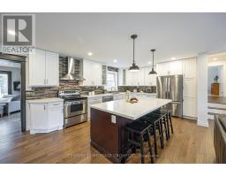 Escape to this incredible half-acre forested lot, where a lovely split-level home meets a true backyard oasis. The main floor exudes luxury with hand-scraped hardwood, custom millwork, and rustic accents of barn board and live-edge wood. At the heart of the home sits a chef's kitchen, anchored by an imposing center island with a breakfast bar, granite countertops, custom stone backsplash and premium stainless steel appliances. Unwind in the garden-view den, featuring a stand-alone wood-burning stove for cozy evenings overlooking the woods. The primary bedroom offers a private retreat with a walk-in closet and ensuite, while the spa-inspired main bath pampers with heated floors. The lower level is designed for entertaining, boasting a great room with a gas fireplace, wet bar, and bright above-grade windows. With a separate entrance to the finished basement and ample storage, this home offers unmatched versatility. Step outside to your multi-level cedar deck and above-ground pool-a private playground for summer swims and winter skating in your own forest clearing. (id:61594)