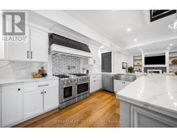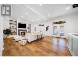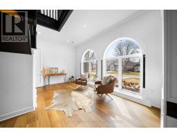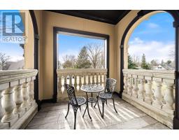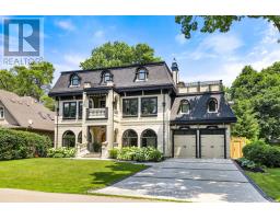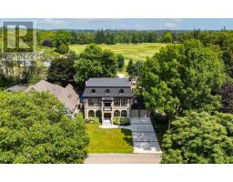 Nestled in scenic Ancaster Village, this French Chateau-inspired residence offers over 7,000 sqft of luxury backing onto the iconic Hamilton Golf Club, with sweeping views of one of Canada's premier courses. This 3-storey masterpiece features 4 beds, 7 baths, 10.5' soaring ceilings, custom millwork, and refined European design. The main floor is designed for entertaining, showcasing a gourmet kitchen with high-end appliances, quartz counters, custom cabinetry and a large island. Three sets of double doors open to a covered outdoor dining area. A formal dining room with chandelier, fireplace and wet bar adds elegance, while the family room with built-ins and fireplace connects seamlessly to the landscaped yard. Second level is dedicated to ultimate comfort, 3 spacious bedrooms each with private baths & walk-in closets. Primary suite boasts gorgeous stone fireplace, custom walk-in closet & spa-like ensuite with freestanding tub, rainfall shower, glass shower, and private terrace overlooking the golf course. Third level serves as a secluded refuge with spacious living room, large bedroom, full bath & kitchenette. A walk-out portico terrace offers panoramic views of the golf course. Lower level features 9' ceilings, a recroom, fitness room, family room with another fireplace, full bathroom, heated floors & a kitchenette. A wine cellar completes your chateau experience. The property boasts a cedar-ceiling covered deck, outdoor gas fireplace, mature trees for privacy, 5 fireplaces, 3 dishwashers, Terrazzo concrete driveway & large tandem garage with 4-post car lift for the car enthusiast. Crafted with an ICF foundation and whole-home hydronic in-floor heating across all four levels, the residence delivers year-round comfort, remarkably low operating costs, and a reduced carbon footprint-luxury that's as smart as it is beautiful. Close to fine dining, shopping, trails, and conservation areas, this property is a rare haven of sophistication, luxury, and timeless elegance. (id:61594)