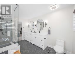 Welcome to this beautifully updated detached two-storey home in the heart of Ayr, the lot is nearly 200' deep and has a bright walk-out basement. With 4 bedrooms, 4 bathrooms, and extensive 2024 renovations, this home blends modern comfort with everyday functionality. The main level showcases a stunning transformation with engineered hardwood and tile flooring, a newly redesigned kitchen with cabinetry, coffee bar, and stainless steel appliances, plus a stylishly renovated powder room. The open-concept layout flows seamlessly from the dining room into the living room, where an oversized window and cozy fireplace create a warm and inviting atmosphere. A sliding door leads to the deck with a custom enclosure (2020)perfect for morning coffee or evening entertaining. Practical touches include a spacious laundry room and new front entry door (2024). Upstairs, the primary suite offers a large walk-in closet and a fully renovated spa-like ensuite (2024) with double vanity, stand alone tub and glass shower. Three additional bedrooms and a refreshed full bathroom provide space for family and guests. The fully finished walk-out basement adds even more living space, featuring an oversized recreation room with fireplace, a wet bar, a renovated full bathroom, and a dedicated home office (2024). Sliding doors open to a private patio, expanding your entertaining options. The backyard is truly exceptional, offering expansive green space for play, gardening, or future outdoor upgrades. Additional highlights include a heated and fully insulated garage, upgraded electrical panel (2024), soffits with switch-operated outlets for holiday lighting, and a reinforced, wired area ready for a hot tub. With its thoughtful upgrades, modern finishes, and an incredible lot, this Ayr home is move-in ready and designed for years of enjoyment. (id:61594)