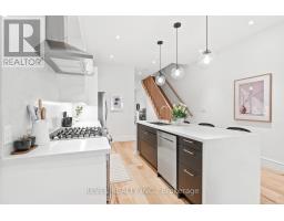 Designed for effortless living and finished with intention throughout, this is the kind of home you move into and immediately feel settled. Rare end-of-row home near Trinity Bellwoods, feels like a semi with added privacy, extra light, and enhanced livability, all in the heart of one of Toronto's most vibrant neighbourhoods. Completely rebuilt on the main and upper levels in 2018, this home blends thoughtful design with quality craftsmanship. The bright, open main floor is built for modern living, custom kitchen with quartz countertops, large island, stainless steel appliances, including a fridge with built-in ice maker and water system, gas stove, and extensive custom millwork with integrated storage and bar setup. The layout flows seamlessly into the dining and living areas with updated flooring, lighting, and smart storage throughout. Walk out to your private back deck for effortless indoor-outdoor living, plus a main floor powder room.Upstairs, two well-proportioned bedrooms include a spacious primary with walk-in closet and second-floor laundry. The spa-inspired bathroom features heated floors, soaker tub, rain shower, and a sleek Toto wall-hung toilet.The lower level offers a self-contained suite with separate rear entrance, updated flooring, insulation, and waterproofing, ideal for flexible use or supplemental income.Outside, enjoy a low-maintenance backyard with artificial turf, drainage system, and cedar fencing, plus a detached garage with parking for approximately 1.5 vehicles and ample storage. An electrical conduit is in place to run power for a future EV charger.Built with foresight, the home was designed to potentially accommodate a future third-storey addition and allow for easy basement reconfiguration, unlocking long-term value.Steps to Trinity Bellwoods, top restaurants, cafes, shops, transit, and the core, this is city living at its best. (id:61594)