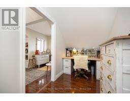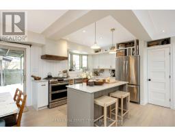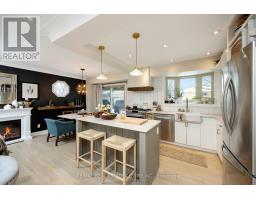 Refined Living for the Modern Family... Welcome to a home where everyday life feels a little more elevated. Offering 2,638 sq ft of beautifully finished, carpet-free living space, this 1 1/2 storey residence blends timeless style with thoughtful function in the heart of Milton Heights. From the moment you arrive you are greeted by a charming covered front porch and tranquil pond, you'll feel the sense of space and privacy this property provides. Inside, heated tile floors, engineered hardwood, crown moulding, pot lights, and a statement fireplace create an atmosphere that is both sophisticated and welcoming.The open-concept main floor is designed for gathering. A stunning kitchen with quartz island, solid acacia butcher block counters, stainless steel appliances, and a gas stove overlooks the backyard deck; perfect for hosting summer dinners while the kids play outside. Upstairs, the primary suite offers a true retreat with a spa-inspired ensuite featuring a rain-head shower, deep soaker tub, built-ins, and a dedicated vanity space- your own private escape at the end of the day. The finished lower level with separate entrance provides flexibility for extended family, teens, a private office, or future in-law potential. And for families who need space- whether for vehicles, hobbies, or weekend projects, the heated double detached garage with 60 amp service and an expansive 10-car driveway is a rare luxury. Nestled in Milton Heights at the base of the Niagara Escarpment and nearby Kelso conservation this home offers a peaceful, family-friendly neighbourhood with scenic walking trails, nearby parks, and easy access to schools, shopping, and Highway 401. Just a short drive to downtown Milton where you can enjoy the Farmer's market, restaurants & shops- the perfect balance of tranquility and convenience. Elegant. Functional. Designed for real life.This is the kind of home families grow into, and never want to leave. (id:61594)