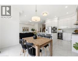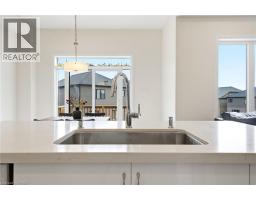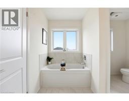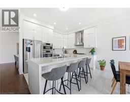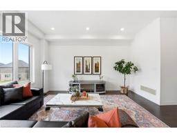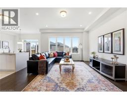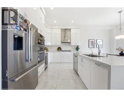 Welcome to this stunning 2-storey home set on an oversized pie-shaped lot, just 2 years new and offering peace of mind with 5 years remaining on the Tarion warranty. Thoughtfully designed, the main floor welcomes you with a convenient 2-piece bath and direct access to the garage just inside the front entrance. Enjoy a bright, open-concept layout featuring a spacious kitchen and living room, complemented by a formal dining area. Large windows flood the space with natural light, highlighting the elegant California knockdown 10 ft. ceilings. The kitchen is a true showstopper with high-end Bosch appliances, including a gas cooktop, built-in wall oven and microwave, bar fridge, a large island with seating with a waterfall quartz countertop and walk-in pantry. Porcelain tile flooring completes the kitchen, while the living and dining rooms feature beautiful, engineered hardwood. Step out from the kitchen onto a private balcony—perfectly sized for your BBQ setup, complete with a gas hookup. Upstairs, you’ll find 4 generously sized bedrooms along with the convenience of upper-level laundry. The primary suite boasts a large 4-piece ensuite and 2 closets, while the second bedroom also enjoys its own private 4-piece ensuite. The remaining two bedrooms share a well-appointed 4-piece ensuite, ideal for family living. The unfinished lower level offers excellent potential and includes a walk-out to the backyard. Conveniently located just 5 minutes from downtown shops and restaurants, 2 minutes to Hwy 403, and within walking distance to the arena, this home combines comfort, style, and accessibility. (id:61594)