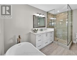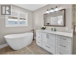UPGRADED CUL-DE-SAC HOME WITH PRIVATE BACKYARD - Welcome home to one of Grimsby's most sought-after neighbourhoods. This fully upgraded two-storey home sits on a private 45' x 110' cul-de-sac lot and offers over 2,400 sq. ft. of finished living space. Step inside the welcoming foyer and into the open-concept main level featuring a custom kitchen with a large breakfast bar, upgraded cabinetry, stainless steel appliances, quartz countertops and backsplash. The kitchen flows seamlessly into the spacious dining area and impressive two-storey family room highlighted by a gas fireplace with stone surround. The main floor also features a convenient 2-piece powder room and a mudroom off the garage with custom cabinetry and a laundry sink (with the option to convert back to main floor laundry). Upstairs you will find a sun-filled primary suite complete with California shutters, a spa-like ensuite bathroom with heated floors, custom glass shower, soaker tub, and upgraded cabinetry. The large walk-in closet offers natural light and a custom shelving system. This level also includes two additional bedrooms, a 4-piece bathroom with convenient stackable washer and dryer. The finished lower level provides even more living space with a large recreation room featuring a gas fireplace and an additional 3-piece bathroom. Step outside to the private backyard, perfect for entertaining family and friends. Enjoy a large deck with gazebo, interlock stone patio, and a garden shed for additional storage. Additional highlights include a double driveway with parking for four cars, and a beautifully finished garage with custom cabinetry and epoxy flooring. Ideally located close to the future GO Station, Peach King Centre, shopping, and convenient QEW access. (id:61594)