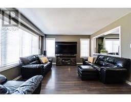 Welcome home to Empire’s popular Edgebrook model, located in the highly sought-after West Brant community. This beautifully upgraded 4+1 bedroom, 3.5-bath home offers a double attached garage, finished basement with side entrance, and modern finishes throughout. Step inside through the grand double-door entry into a spacious foyer, where designer neutral tones create a warm and inviting atmosphere. The elegant formal dining room is perfect for hosting family gatherings, while the open-concept living space seamlessly connects the living room, dinette, and stylish kitchen. The kitchen boasts cabinetry, large island, backsplash, and light fixtures, all designed for both style and functionality. Upstairs, the primary suite offers a spacious walk-in closet and a spa-like ensuite with a soaker tub. Three additional generously sized bedrooms, a full bathroom, and bedroom-level laundry complete the upper level. The finished basement offers fantastic income potential with a separate side entrance and includes a bedroom, 3-piece bathroom, and a second kitchen. The separate entrance provides privacy and convenience for a potential rental suite or multi-generational living. Outside, enjoy the fully fenced backyard, above-ground pool and Deck, a secure space ideal for kids and pets to play freely. Located in a family-friendly neighborhood close to top schools, parks, trails, and all amenities, this home is perfect for growing families or investors seeking income potential. Don’t miss this incredible opportunity—schedule your private showing today! (id:61594)