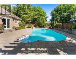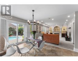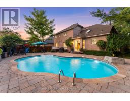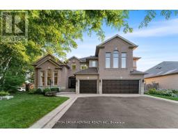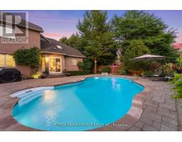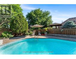 Executive Living in Prestigious Buckingham Gate. Welcome to this exceptional 4+1 bedroom executive home, nestled on a quiet crescent in the sought-after Buckingham Gate community. From the moment you step inside, you'll be captivated by the soaring cathedral ceilings, elegant open-concept living and dining areas, and a modern AYA kitchen with a breakfast bar and bright breakfast area overlooking the main floor family room with gas fireplace. The main-floor office provides the perfect workspace or can easily serve as a sixth bedroom for added versatility. The finished lower level is an entertainer's dream, featuring a theatre room, wet bar, sauna, yoga room, a bedroom with a 3-piece ensuite, and an additional 2-piece bath. Step outdoors to your own private backyard oasis, complete with a heated saltwater pool, hot tub, and professionally landscaped grounds fronting onto green space. Additional highlights include a triple-car garage with parking for six, and walking distance to schools, daycare, places of worship, shops, and Highways 401 & 407. Experience executive living at its finest. Your dream home awaits. (id:61594)