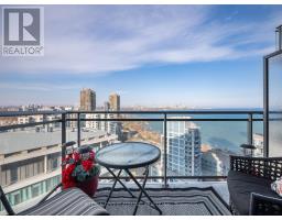 Welcome to this stunning condo at 2121 Lake Shore Boulevard W #2304 in Toronto's sought-after Mimico community, offering approximately 1,010 sq. ft. of beautifully designed living space with 2 bedrooms + den and 2 full bathrooms, enhanced by elegant engineered hardwood flooring and soaring 9 ft ceilings, and perfectly positioned with southeast exposure and unobstructed views of Lake Ontario and the Downtown Toronto skyline. The primary bedroom features a walk-in closet and its own private balcony retreat, while the living room and second bedroom share a larger connected balcony that showcases breathtaking panoramic water and city views. The open-concept kitchen is equipped with stainless steel appliances, granite countertops, and a functional breakfast bar, seamlessly flowing into the living and dining areas with walkout access to the balcony, creating an ideal space for both everyday living and entertaining. Additional features include separate heating controls for personalized comfort, as well as a comprehensive alarm and security system for peace of mind. Residents enjoy premium amenities including a salt water swimming pool, jacuzzi, sauna, golf simulator room, two gyms, theatre room, library, party room, two car washes, two guest suites, rooftop sky room, 24-hour concierge, electric vehicle charging stations, and bike storage. Conveniently located near shopping centres on The Queensway, with quick access to Highway 427 & The Gardiner Expressway, and close to Mimico GO Train station and TTC, this home is surrounded by scenic greenspaces including Humber Bay Shores Park, Humber Bay Park East & West, South Humber Park, Sunnyside Beach, High Park, along with lookout points like Sheldon Lookout and landmarks such as The Palace Pier. (id:61594)