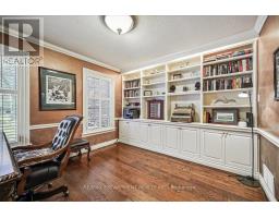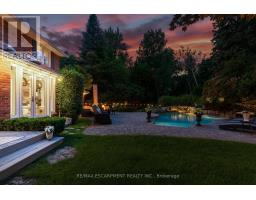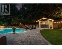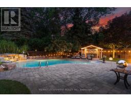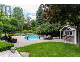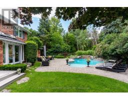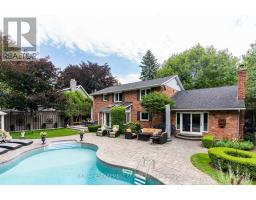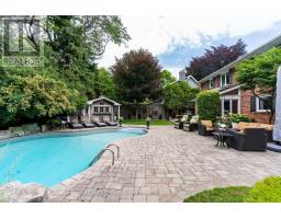 This stately Georgian home is the epitome of luxury living. Located in one of the finest neighbourhoods of South-East Oakville & in the coveted Oakville Trafalgar school district. Surrounded by mature trees & lush greenery in a ravine-like setting, the property is incredibly private with no direct views of neighbours. With over 3,500 square feet of finished living space the home is ready to move into. The main floor is spectacular and includes wide-plank oak flooring, widened doorways & hallways, & custom built-ins. The chef's kitchen is the heart of the home, featuring built-in appliances, a gas range, & an oversized island with seating & a butler sink. The family room flows seamlessly from the kitchen & features a walkout to the backyard & a wood-burning fireplace. For added character & warmth, the living room boasts a stunning open flame gas fireplace. And for an active family the large main floor office & laundry room with garage access are a must. The upper level features 4 generously sized bedrooms, including a spacious primary suite complemented by a four-piece ensuite. This ensuite boasts a glass-enclosed shower, a double-sink vanity, a walk-in closet & a separate linen closet. This entire level has been recently refreshed with a new paint application, refinished stairs & banisters & new carpeting installed within the last six months. The lower level has been nearly rebuilt from the ground up & features a huge recreation room ideal for watching the hockey game or for kids at play. As well as a renovated bathroom, an additional bedroom, an exercise area, a cedar mirrored closet, a cold room, & various storage spaces. The backyard is absolutely beautiful. If you like peace and tranquility or perhaps an afternoon filled with laughter & splashing in the pool, this is the place for you. It's been professionally landscaped complete with a versatile pool house/cabana bar wired for sound & TV. (id:61594)