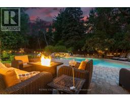 This stately Georgian home is the epitome of luxury living. Located in one of the finest neighbourhoods of South-East Oakville & in the coveted Oakville Trafalgar school district. Surrounded by mature trees & lush greenery in a ravine-like setting, the property is incredibly private with no direct views of neighbours. With over 3,500 square feet of finished living space the home is ready to move into. The main floor is spectacular and includes wide-plank oak flooring, widened doorways & hallways, & custom built-ins. The chef's kitchen is the heart of the home, featuring built-in appliances, a gas range, & an oversized island with seating & a butler sink. The family room flows seamlessly from the kitchen & features a walkout to the backyard & a wood-burning fireplace. For added character & warmth, the living room boasts a stunning open flame gas fireplace. And for an active family the large main floor office & laundry room with garage access are a must. The upper level features 4 generously sized bedrooms, including a spacious primary suite complemented by a four-piece ensuite. This ensuite boasts a glass-enclosed shower, a double-sink vanity, a walk-in closet & a separate linen closet. This entire level has been recently refreshed with a new paint application, refinished stairs & banisters & new carpeting installed within the last six months. The lower level has been nearly rebuilt from the ground up & features a huge recreation room ideal for watching the hockey game or for kids at play. As well as a renovated bathroom, an additional bedroom, an exercise area, a cedar mirrored closet, a cold room, & various storage spaces. The backyard is absolutely beautiful. If you like peace and tranquility or perhaps an afternoon filled with laughter & splashing in the pool, this is the place for you. It's been professionally landscaped complete with a versatile pool house/cabana bar wired for sound & TV. (id:61594)